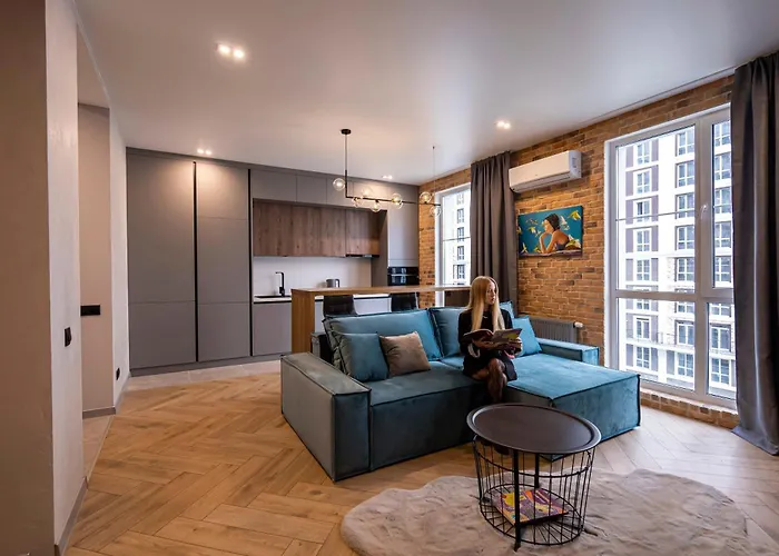 Апартаменти розташовані у районі Солом'янський, звідки можна швидко дістатися до Міжнародного аеропорту "Київ" за 15 хвилин їзди. Пінчук Арт Центр знаходиться на відстані 15 хвилин їзди машиною.